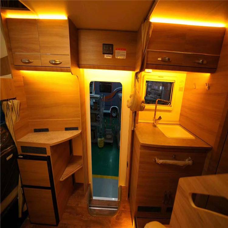 轿厢尾部的右侧,布置了做饭的炊具,欧意品牌的燃气炉被固定在了具有滑动功能的平台上,而且在上面还有实用的储藏空间,以及电动控制的抽拉舱,启动后轿厢的尾部会向外滑动50cm,增加使用空间。到这款房车的动力系统,它所配备的是3.0l自然吸气发动机,同时也匹配了8速自动变速箱,尤其是它的整体配置,也是更加丰富,配备的e SP电子稳定系统以及四探头倒车雷达,都是给这款车带来了非常不错的驾驶效果,