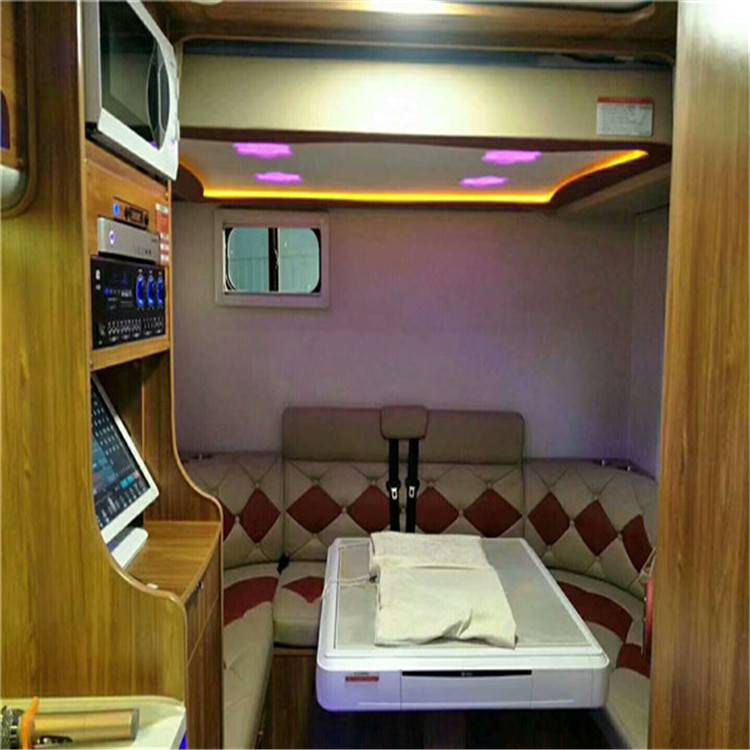 后部使商务型的环形沙发,为出行提供了足够大的好多空间,道路夜晚休息的时候,**部使电动吊床,放下来就是一米九宽一米二的双人床。满足人的睡眠需求