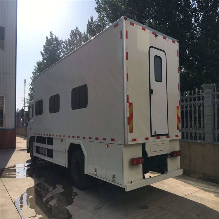 宿营车是我们厂家在东风天锦的底盘上打造而来的,主要是为了满足野外作业不具备居住条件的团体日常生活娱乐,大型宿营车配备了高原柴油灶,厨房,厕所,相当于一个流动的住房,在恶劣的环境作业住宿尤为关键,因此,大型宿营车应运而出,为野外作业的团队提供了优质的后勤**,让团队衣食住行都变得简单高效起来,今天我为大家介绍一款东风天锦宿营车。