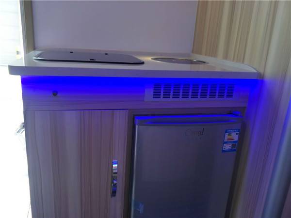 同时,车厢侧门旁配有一台外置抽拉单眼煤气灶,非常符合国人使用燃气做菜的习惯,而且避免了烹饪时油烟污染车内空气的问题。