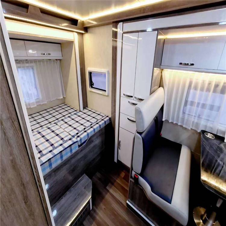 依维柯沿用了经典的布局设计,前额头床、中置卡座沙发、后纵置双人床,不同之处在于后纵置双人床上方还新增一张单独的床位,意在多一个人的睡眠空间,适合3-5人的出行需求。室内整体的原木家具配色和灯光的搭配十分巧妙,构造出一种非常柔和温馨的舒适之感,双人对坐沙发外形设计规整,色调观感上与内饰家具、隐私帘以及灯光相得益彰,做到了流畅的过渡。进门的左手边是简易的多功能厨房,配有多美达房车**煤气灶、洗菜盆、抽烟机等,防火桌面设计,同时配有隐藏式多功能插座和多个储物格,锅碗瓢盆或者咖啡壶、热水壶、杯子等,都可以放得下。车尾门可左右开启,如果没有遮阳棚、爬梯等房车装备的话,从外观上来看就是一款商务车,相比较于C型车来说更加低调,即使平常代步也不会吸引过多的注意。