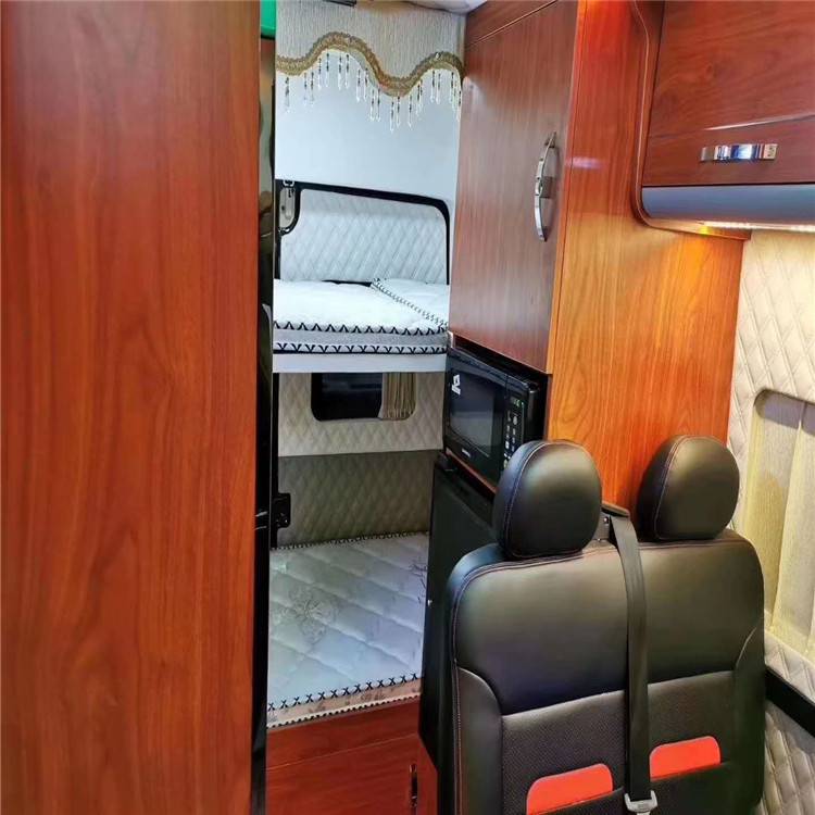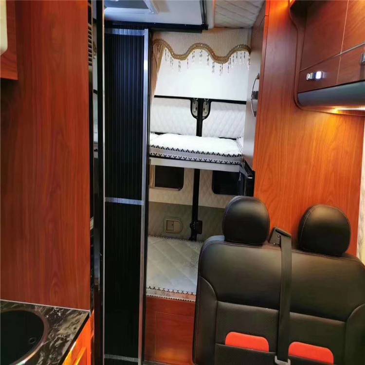 车内配备一张舒服舒适的大床,是房车旅行中*的。局限于B型房车的宽度,后横床的长度受到局限。而这款车采用了后纵床上下铺设计,使得床的长度和宽度达到了1850*90mm,B型车有这么宽大的床真是奢侈啊!也是这款车的亮点之一。