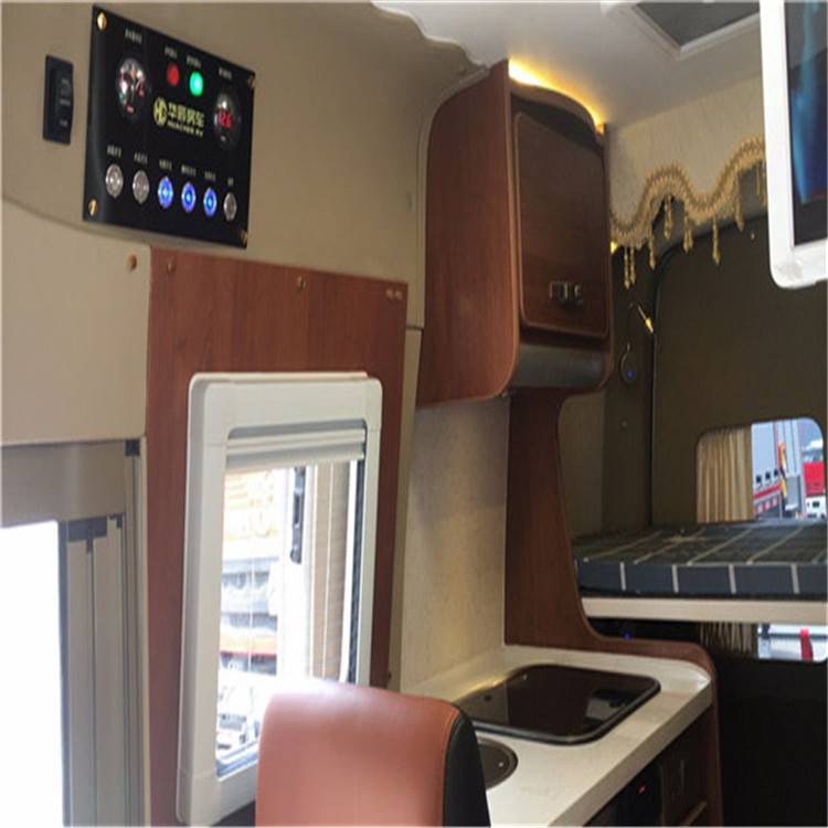这款车采用的是5座,后上下纵床布局设计。驾驶舱采用三座布局,可以旋转和后面的卡座行成包围,同时满足5人聊天喝茶。全车座椅采用真皮包裹,用料厚实,乘坐舒适,长途旅行不觉得累。